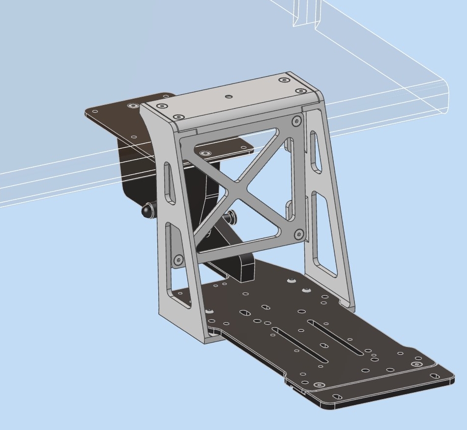 During the design phase the primary goal of the Mach1 Mount design was to have a mount that would quickly stow, remain out of the way when not in use and provide a strong and sturdy platform for my HOTAS. The mount had to have a minimum number of parts, stow the HOTAS well out of the way, maintain a low profile and be built to last.
