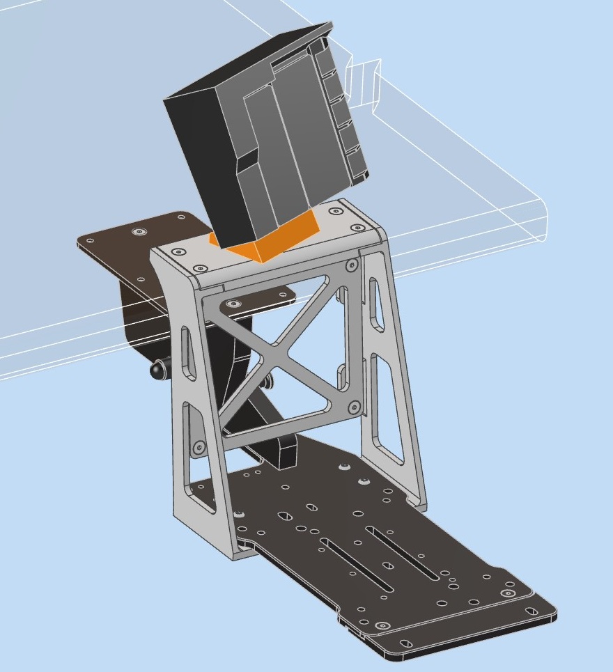 Faced with the problem of working from a small home office that was also the centre of after hours flight and space simming, it became apparent there wasn’t enough room to accommodate work and play needs at the same time. Stacking controllers on top of each other, on the floor, behind or even on the monitor just didn’t work. They took up too much room, got in the way and the cables were always a tangled mess. That’s when the idea for a stowable mount started to form.