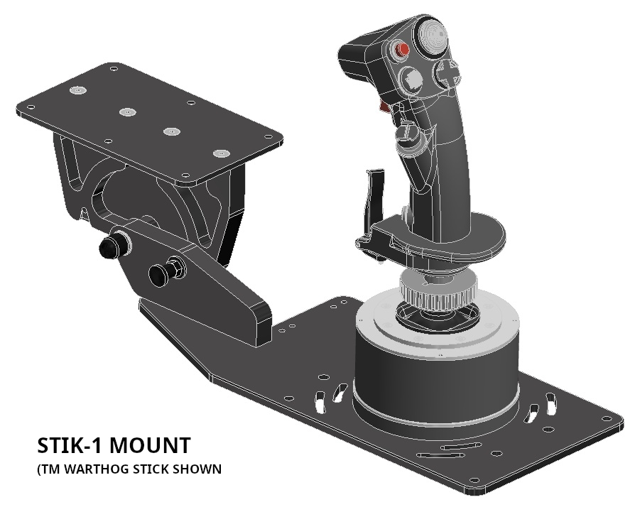 The X56 stick and throttle may be mounted to the STIK-1 and THTL-1 mounts using a 3D printed adapter. A free .STL adapter file is available in the Downloads section to produce an X56 adapter for the STIK-1 and THTL-1 mounts.