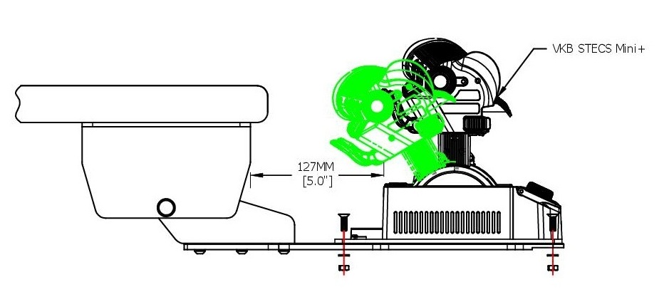The Mach1 Mount will position the base of your HOTAS 115mm (4.5in) below your desk.